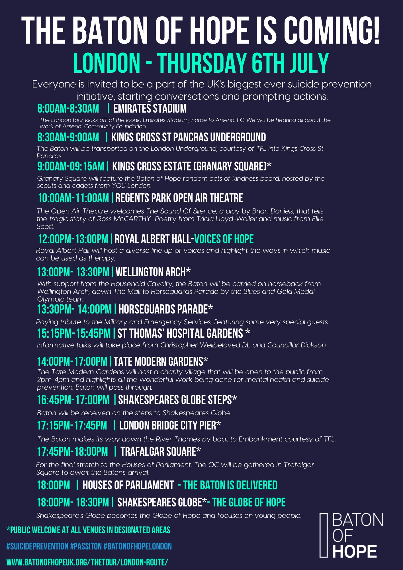 - For stories of hope, all the London locations and more see the Baton of Hope web pages