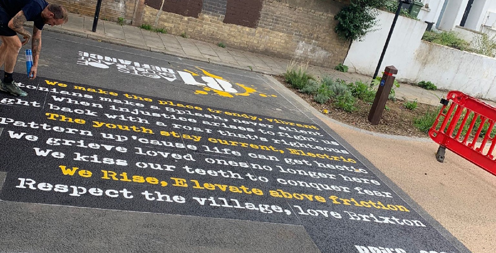 Railton Road is becoming a unique heritage trail with poems by renowned local poets Ty, Bries and Malika Booker being turned into public realm installations on the Shakespeare Road and Railton Road traffic filters. The first poem is now in place on Shakespeare Road.